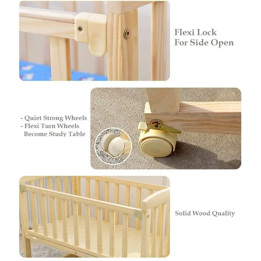 OSUKI cradle is the most soothing and comforting accessory that can light rock your little angel to sleep. Japanese style multi functional rocking wooden baby cradle cot bed a a perfect and safe cradle that is made up of imported New Zealand Pine Wood. Gentle wheel using motion and you can lock the cradle from rocking. The wheels on the cradle make the cradle easy to move around your house, you can effortlessly move the cradle wherever you want. The wheels can be pinned down to one place and curb the cradle From rolling down on its own profile. The low to the ground profile allows an easy access to baby for midnight feeds. Parents can keep their baby close by in a confined environment for babies to sleep. It is simple, durable made Side. It's an ideal option for your babies.