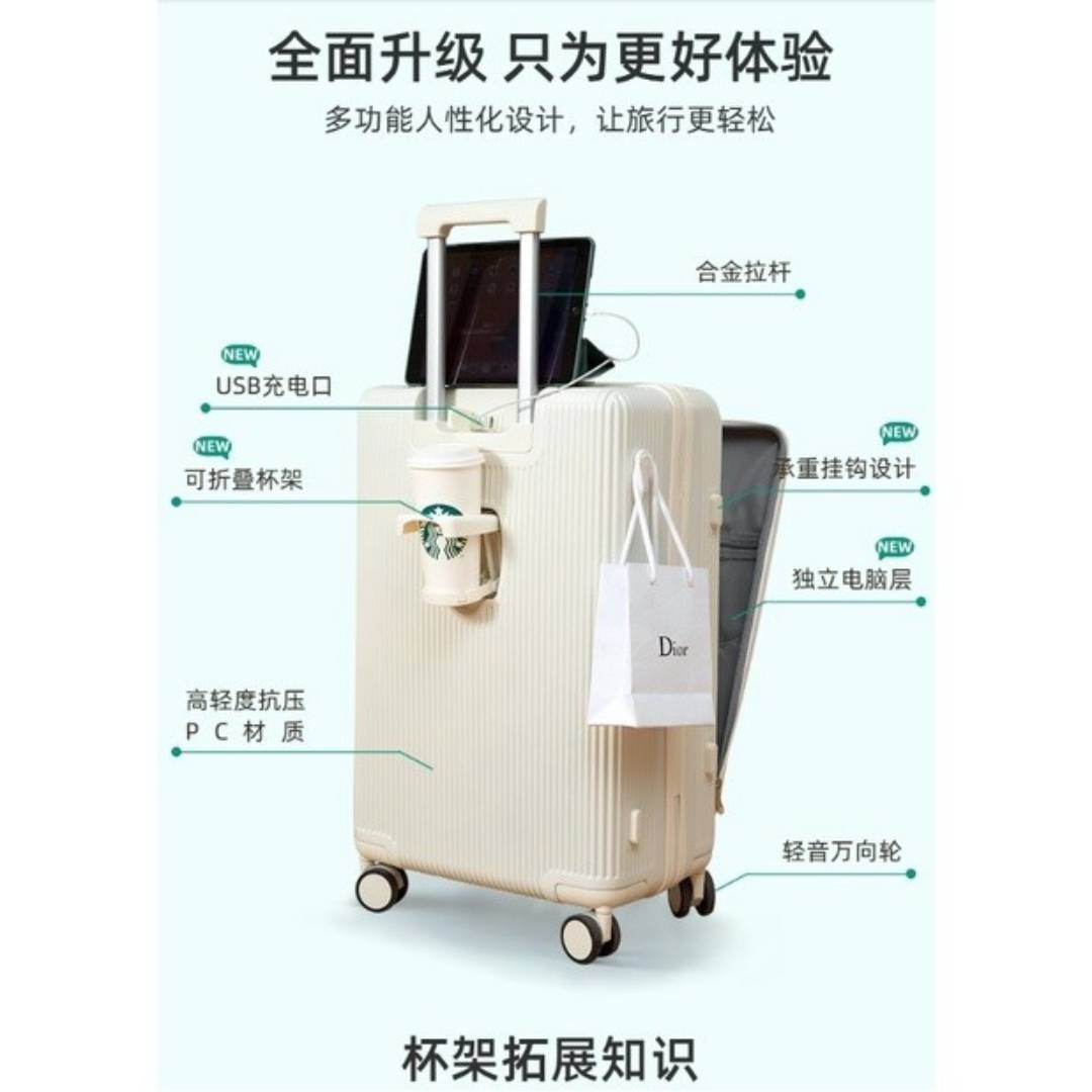 [IX] Portable Travel Luggage Suitcase Front Opening 20/24 inch with USB Port Charging