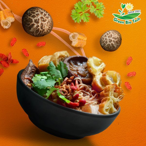 This herbal soup base noodle bak kut teh is made with Codonopsis, Angelica Heat, Cinnamon, Pepper, Licorice, Fennel, Clove, Orange Peel, Sea Salt.To provide its rich and flavorful yet beneficial soup.