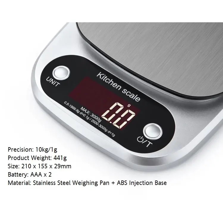 OSUKI Food Weight Scale Digital made of high quality stainless steel material platform, eco-friendly, durable and sturdy to use. Equipped with a high precision strain gauge sensor, perfect for using. Wide LCD screen, easy to read. Automatic zero resetting. The scale will automatically switched off when it is in non-use condition in order to save power, lower power consumption. Weight readouts are displayed in three different modes, g, oz, ml, you can switch freely by pressing the button.